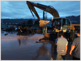 險(xiǎn)情雖然得到控制,更重要的是考慮如何盡快復(fù)工復(fù)產(chǎn),由于雨勢(shì)太大,山洪太猛,導(dǎo)致現(xiàn)場(chǎng)斷電、部份基坑坍塌、部分抗浮錨桿損壞,首先要解決基坑積水問(wèn)題,需要更多更大型的抽水泵對(duì)基坑進(jìn)行全面抽水,由于全市險(xiǎn)情形勢(shì)嚴(yán)峻,抽水泵供應(yīng)嚴(yán)重短缺,應(yīng)急領(lǐng)導(dǎo)小組現(xiàn)場(chǎng)立即決定,立刻聯(lián)系成都廠家緊急采購(gòu)3臺(tái)大型柴油抽水泵進(jìn)行現(xiàn)場(chǎng)基坑排水作業(yè)。同時(shí),現(xiàn)場(chǎng)30余名工人正在緊鑼密鼓進(jìn)行清淤工作。